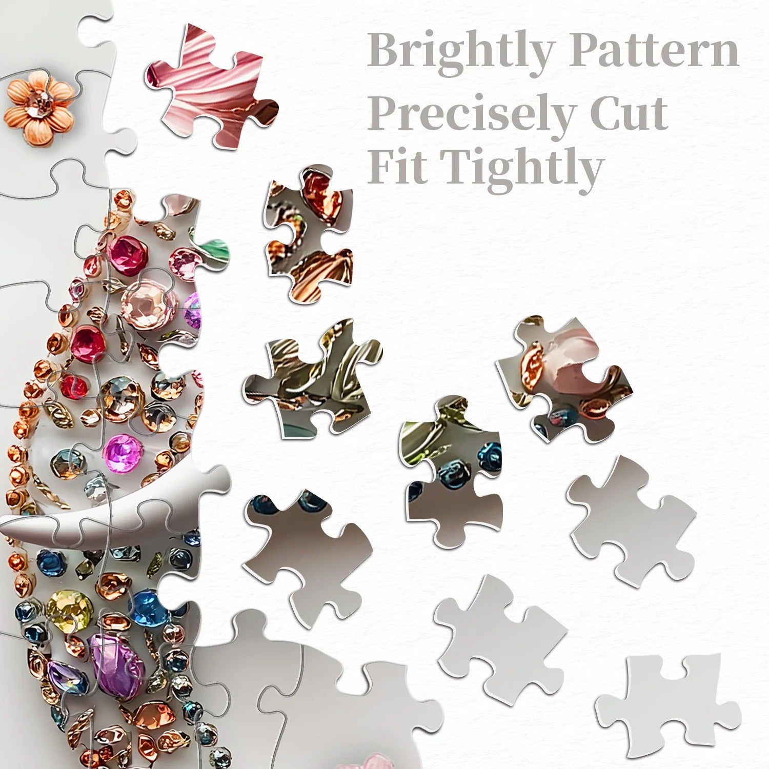 Challenging 1000-Piece Puzzle for Art Lovers: Perfect for both casual puzzlers and enthusiasts, this 1000-piece puzzle offers a rewarding challenge. It transforms into a stunning artwork that reflects the complexity and beauty of embroidery, gemstones, and floral design.