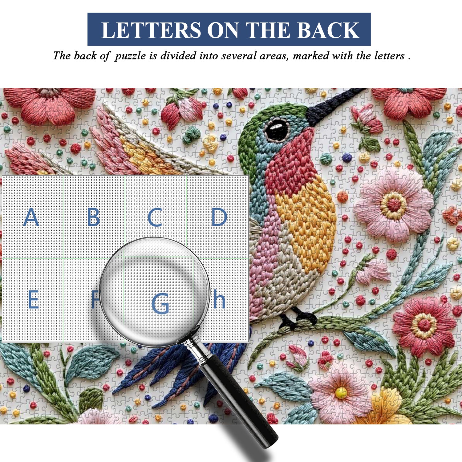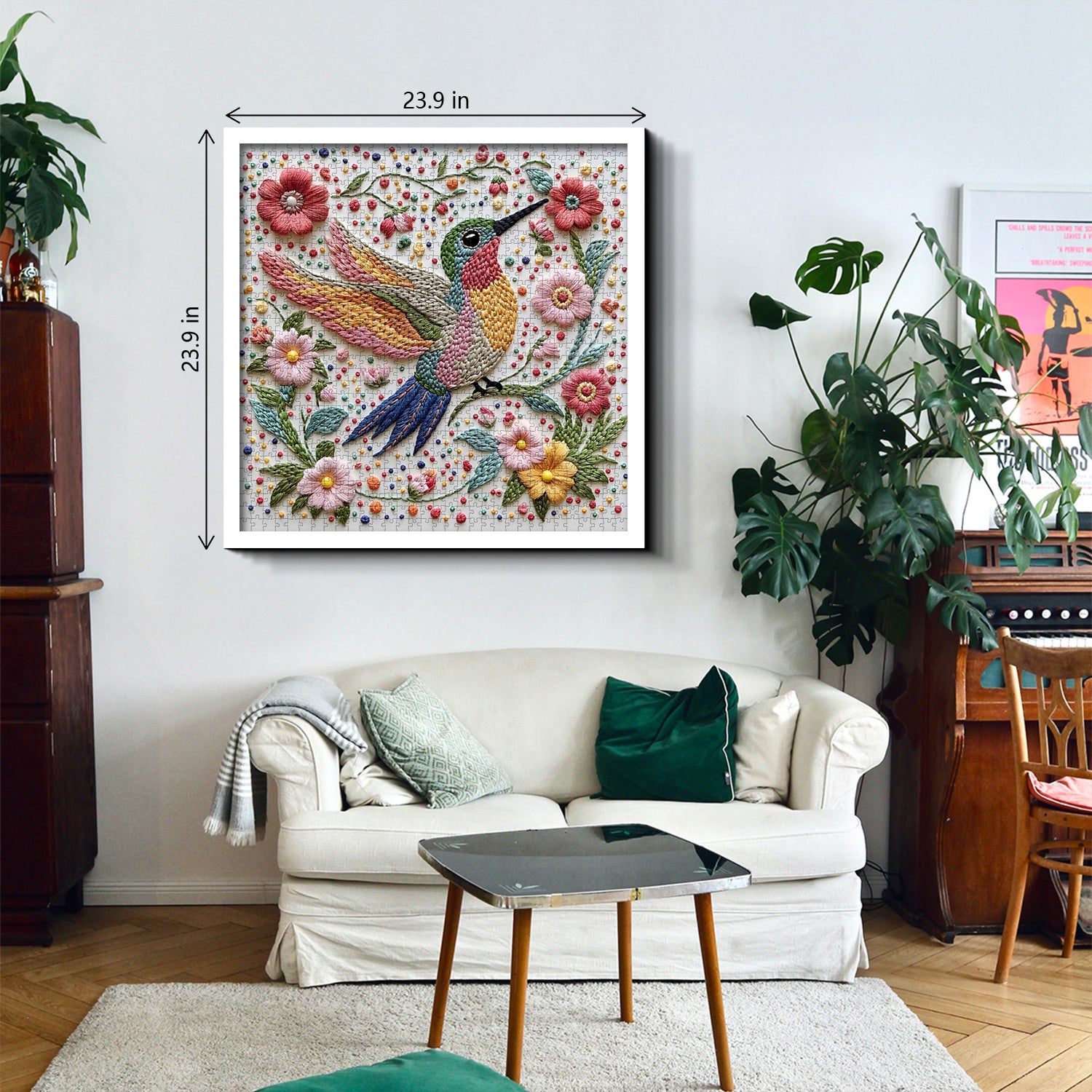 【Embroidered WingsThis jigsaw puzzle presents a graceful hummingbird fluttering through a sea of flowers with a unique three-dimensional perspective. The vibrant colors and exquisite details make it seem as if each feather is embroidered with silk thread, shimmering with the light of life in its gentleness.