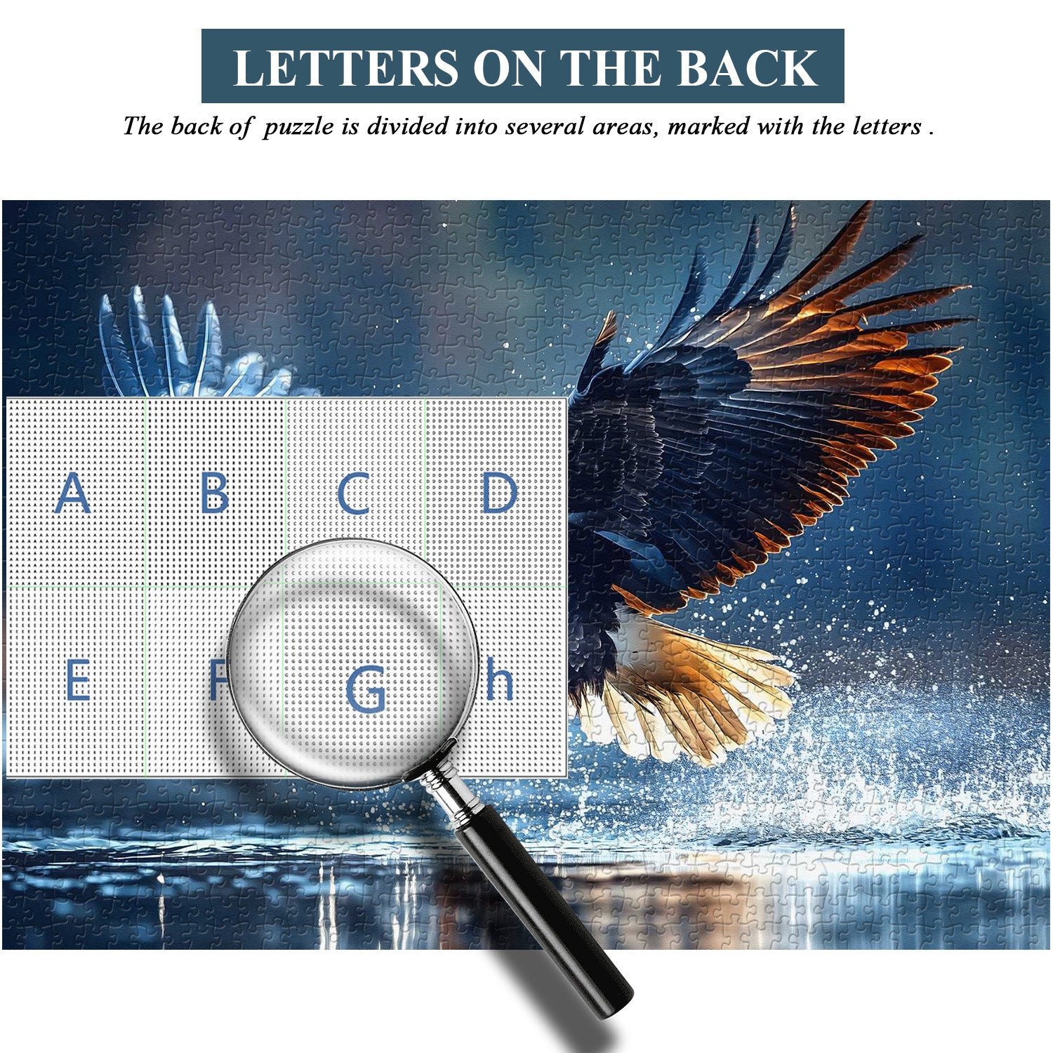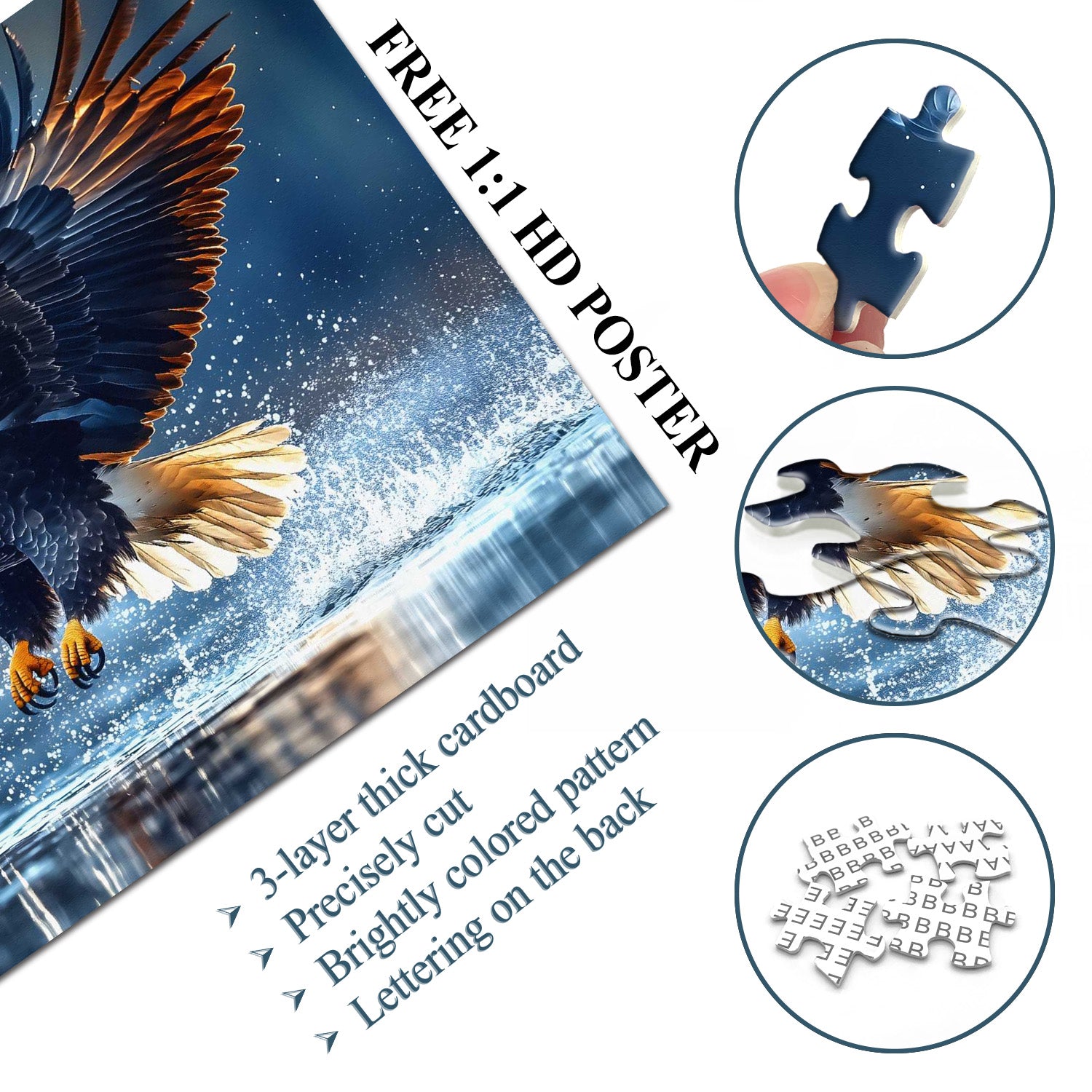🦅🌊Majestic Eagle Jigsaw Puzzle:This puzzle captures the moment an eagle spreads its wings and soars through the azure sky. The eagle's sharp gaze and powerful wings exude regal majesty. Its reflection in the lake below adds depth and realism, making it seem as if you can hear the sound of its wings cutting through the air.