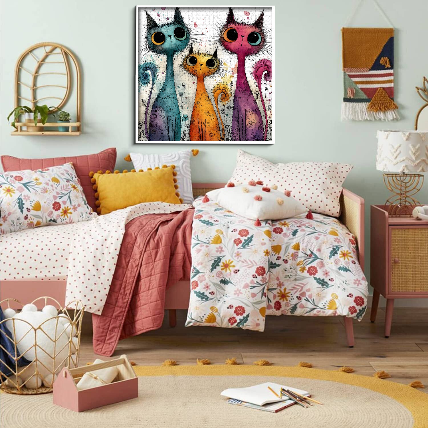 🐱🌈Agile Cat GroupThis puzzle showcases three whimsical cats, each with unique colors and patterns, as if from a fantastical world. From bright blue to warm orange to soft pink, each cat boasts stunning color combinations. Each cat is adorned with exquisite patterns, as if painted by an artist, truly breathtaking.💫🪐✨
