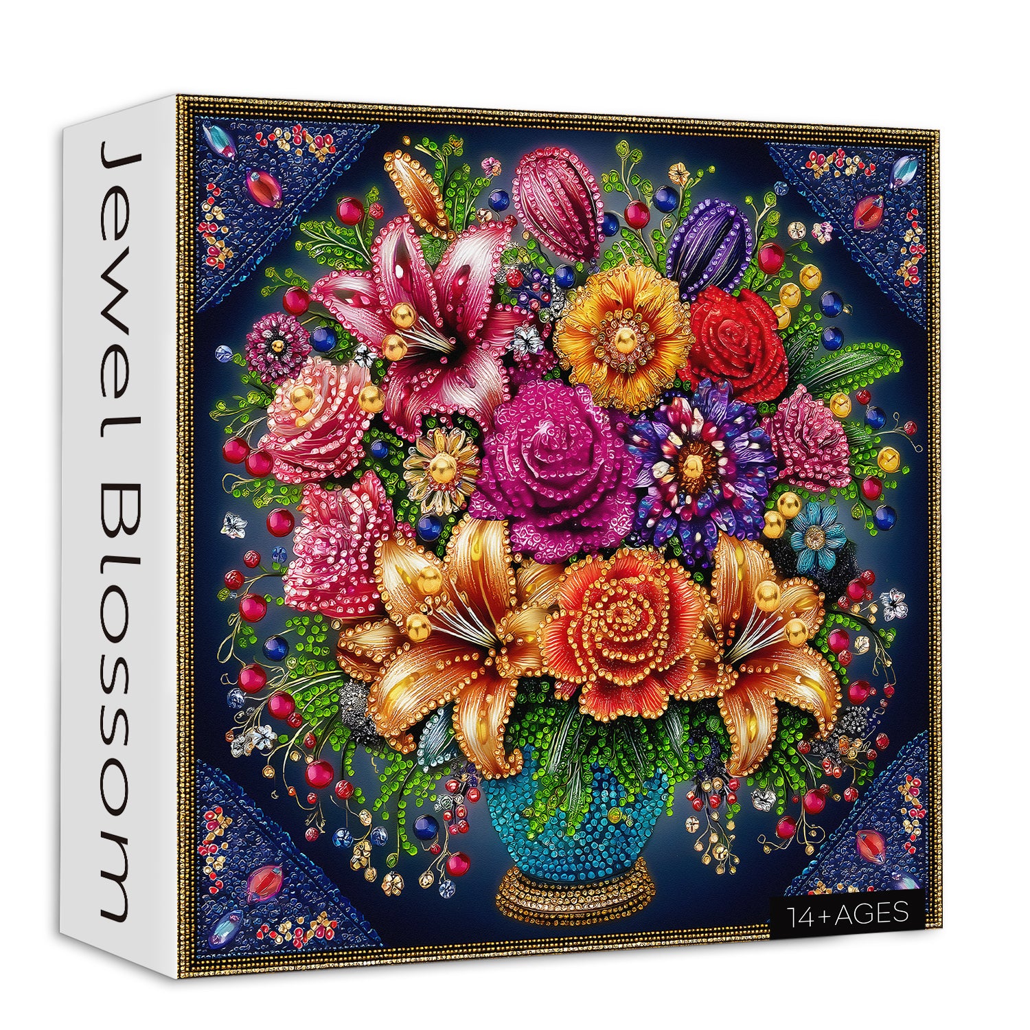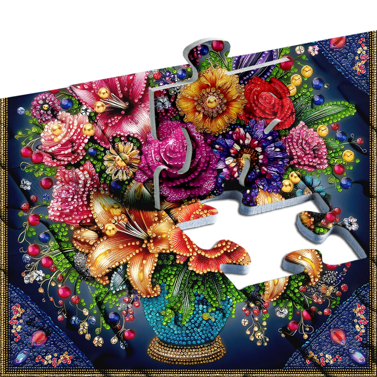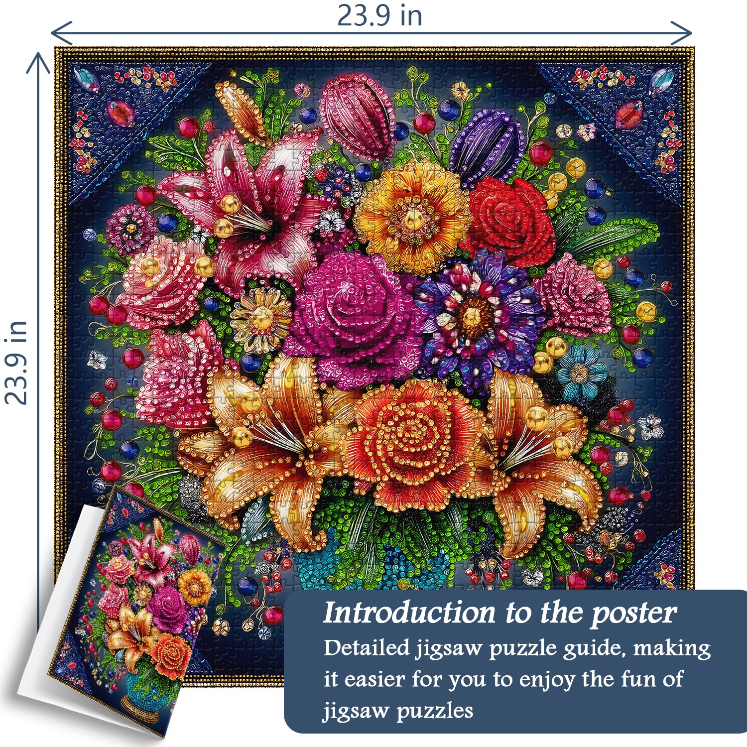 💐【Jewel Blossom Jigsaw Puzzle】This floral-themed puzzle is so vibrant that each petal seems sculpted from jewels. Intense colors and rich layers of color, roses, lilies, and daisies interweave into a dreamy bouquet, transporting you to a glittering palace of art. Once completed, it's more than just a puzzle; it resembles a priceless jewel painting.