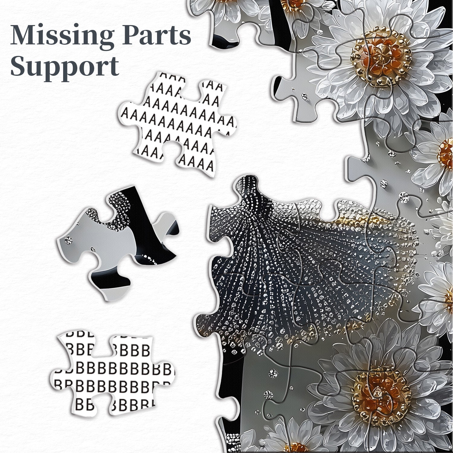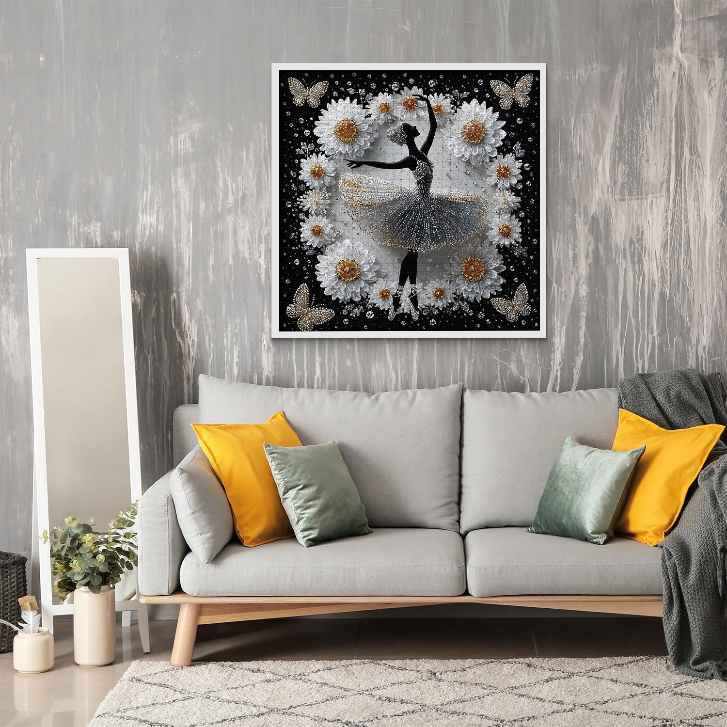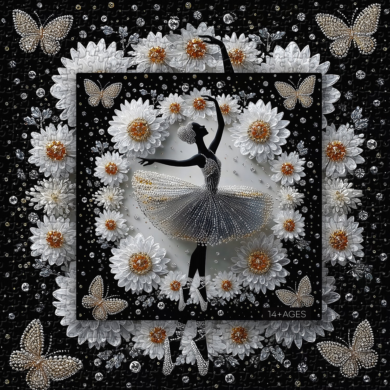 💃🌼【Elegant Dancer】This puzzle depicts a graceful dancer, clad in a tutu adorned with countless tiny beads and sequins, dancing gracefully in the moonlight. The dancer is surrounded by delicate white daisies, each with a golden center. Silver butterflies flutter among the flowers, adding a touch of elegance and purity.🩰🦋✨