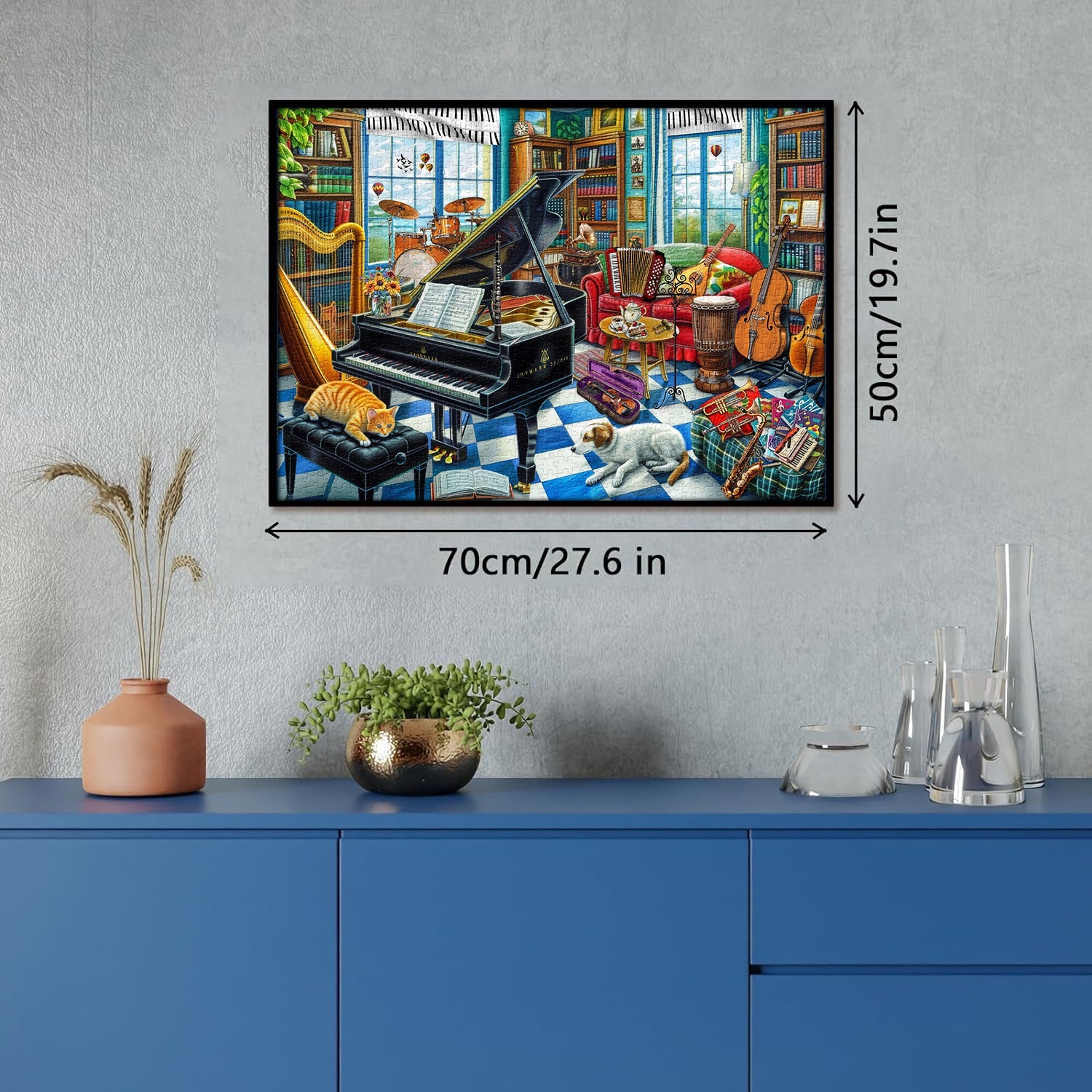 Music Room Jigsaw Puzzle 1000 Pieces: This puzzle 1000 pieces for adults, comes with sturdy packaging box and high-resolution poster. Size: 27.6*19.7 inches when finished. The back is marked with letters.