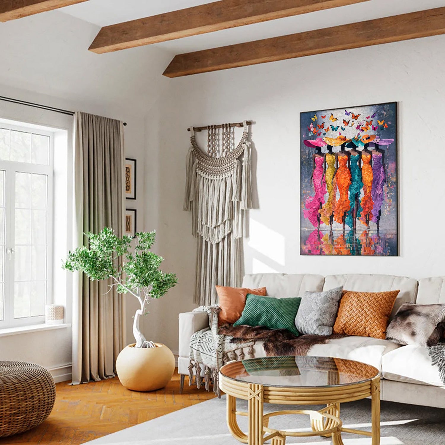 💃🦋【Butterfly and Muse】This puzzle features six dancers in vibrant, long gowns, their silhouettes appearing exceptionally elegant and mysterious under the lights. The dancers' skirts are predominantly pink, yellow, orange, blue, and purple, each a flowing feast of color.🌺🌈