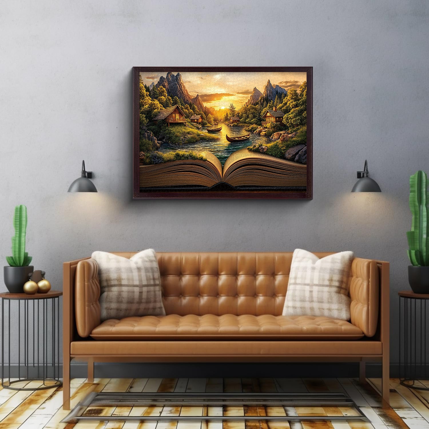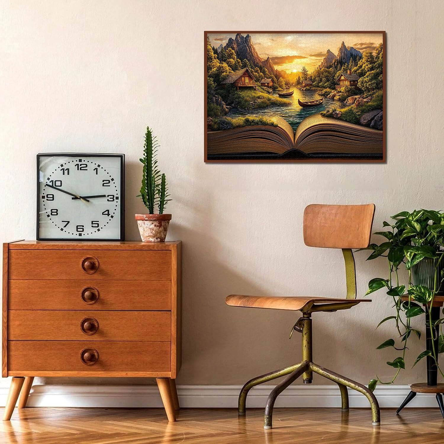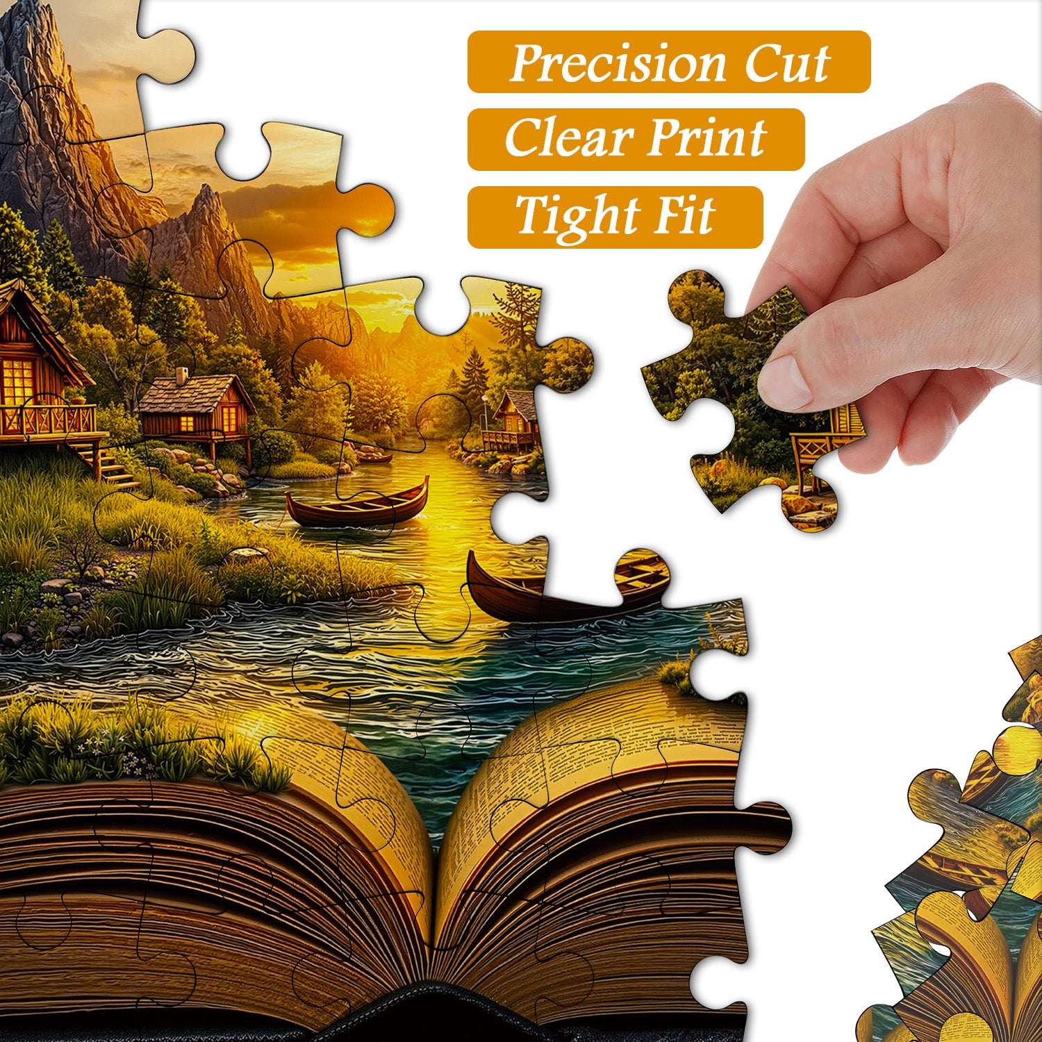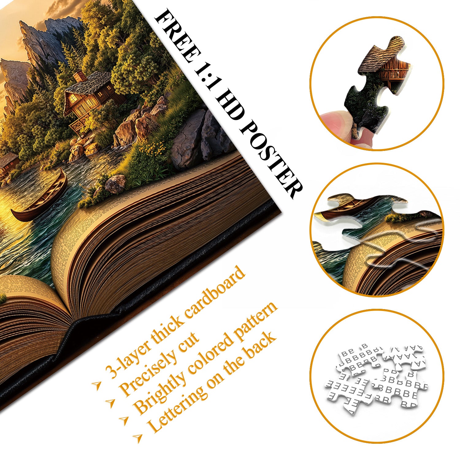 🌅🌊【Book of Sunset 】This puzzle features an open book depicting a fantastical river valley, immersing you in a mystical world. A clear river meanders through the valley, flanked by lush trees and rocky cliffs, showcasing the majesty of nature.🎁