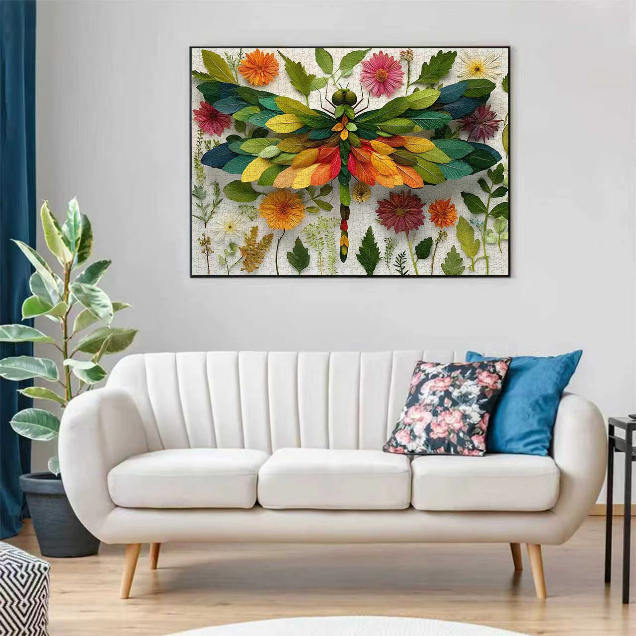 Indoor DecorationThe completed dragonfly appears to float on a canvas of flowers and leaves, making it a perfect decoration for the living room, study, or workspace. A jigsaw puzzle is not just a game, but a natural art piece to be permanently treasured.