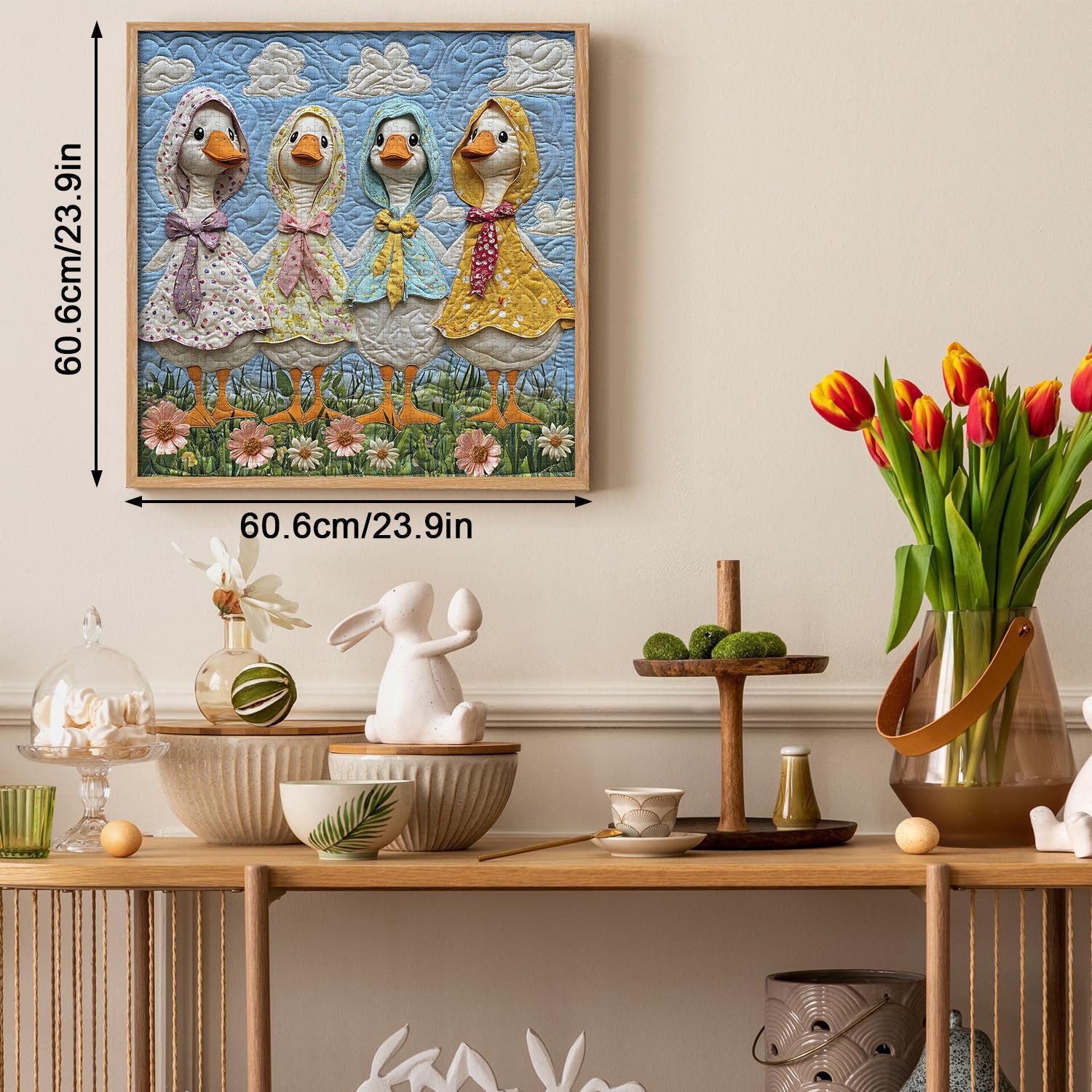 🦆🌼【Patchwork Ducks】This puzzle features four adorable ducklings dressed in cute floral outfits, seemingly enjoying a fun-filled spring day. The ducklings, dressed in pink, yellow, blue, and green floral coats, are all lively and cute, adding boundless vitality to the picture.🌺