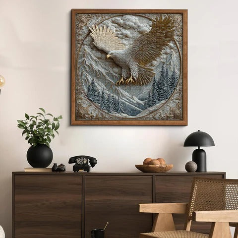 🏡【Space Aura Magic】: Hang it in your living room, study, office, or collection room to instantly enhance the space's power and prestigious style. The contrast between the golden eagle and the snow-capped peaks creates a three-dimensional effect under light, resembling a real relief panel.