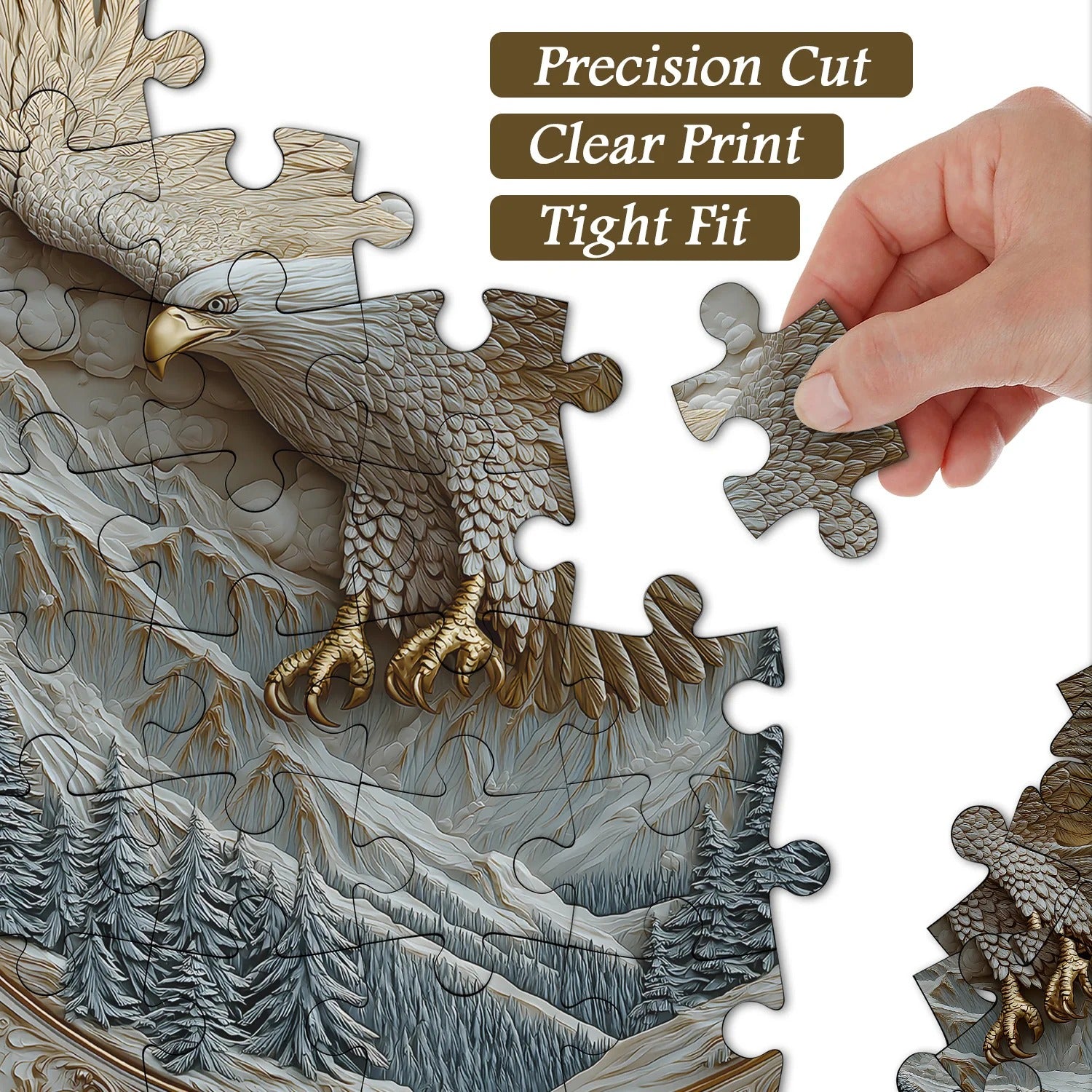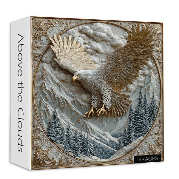 🦅【Above the Clouds Jigsaw Puzzle】: As golden wings pierce the mountain winds, an eagle soars above the sea of clouds. It traverses the mountains, its power and glory resonating in the air. This puzzle presents the eagle's majestic posture with an "embossed texture," layers of feathers stacked like golden leaves, and mountains and clouds sculpted in three dimensions, as if soaring directly from the painting.