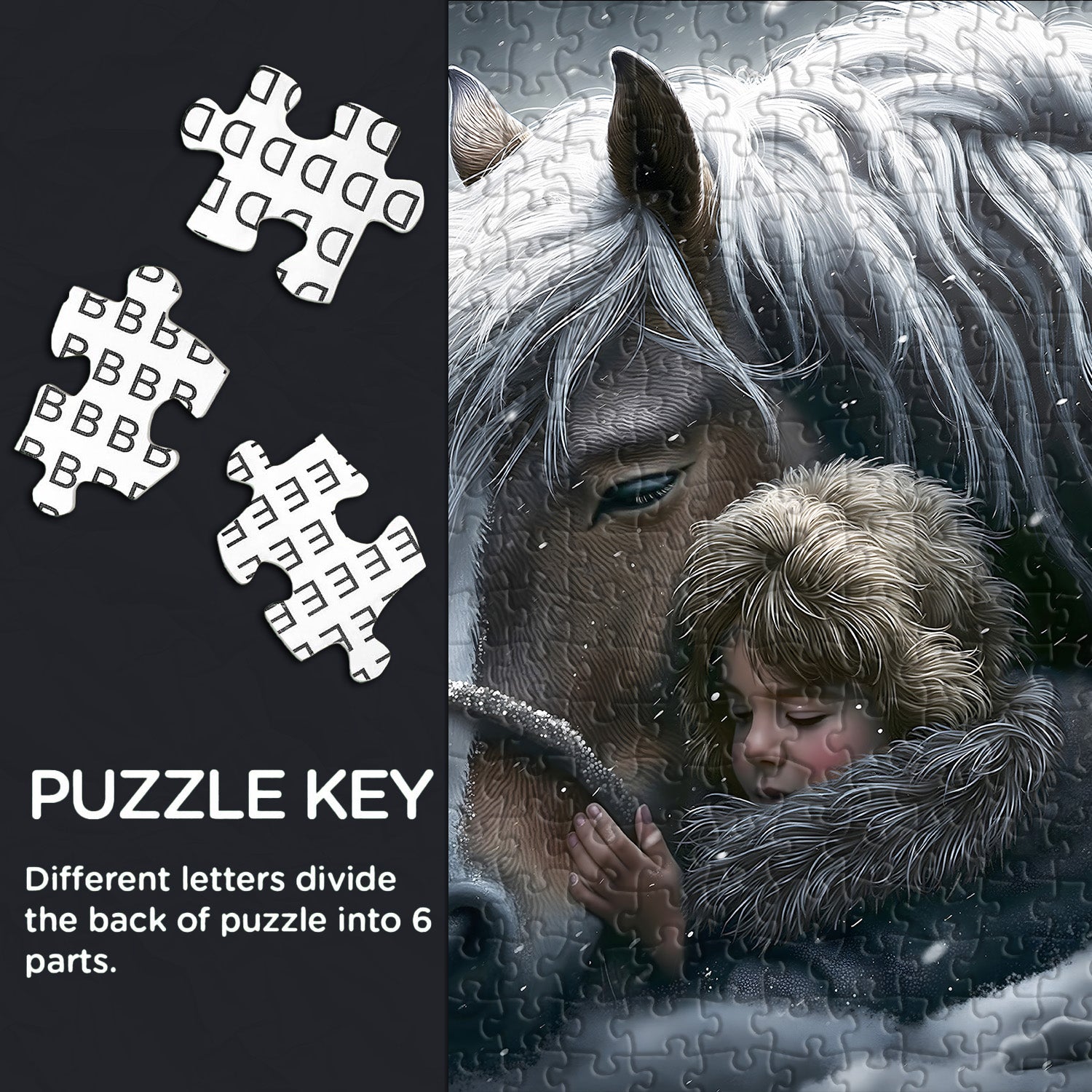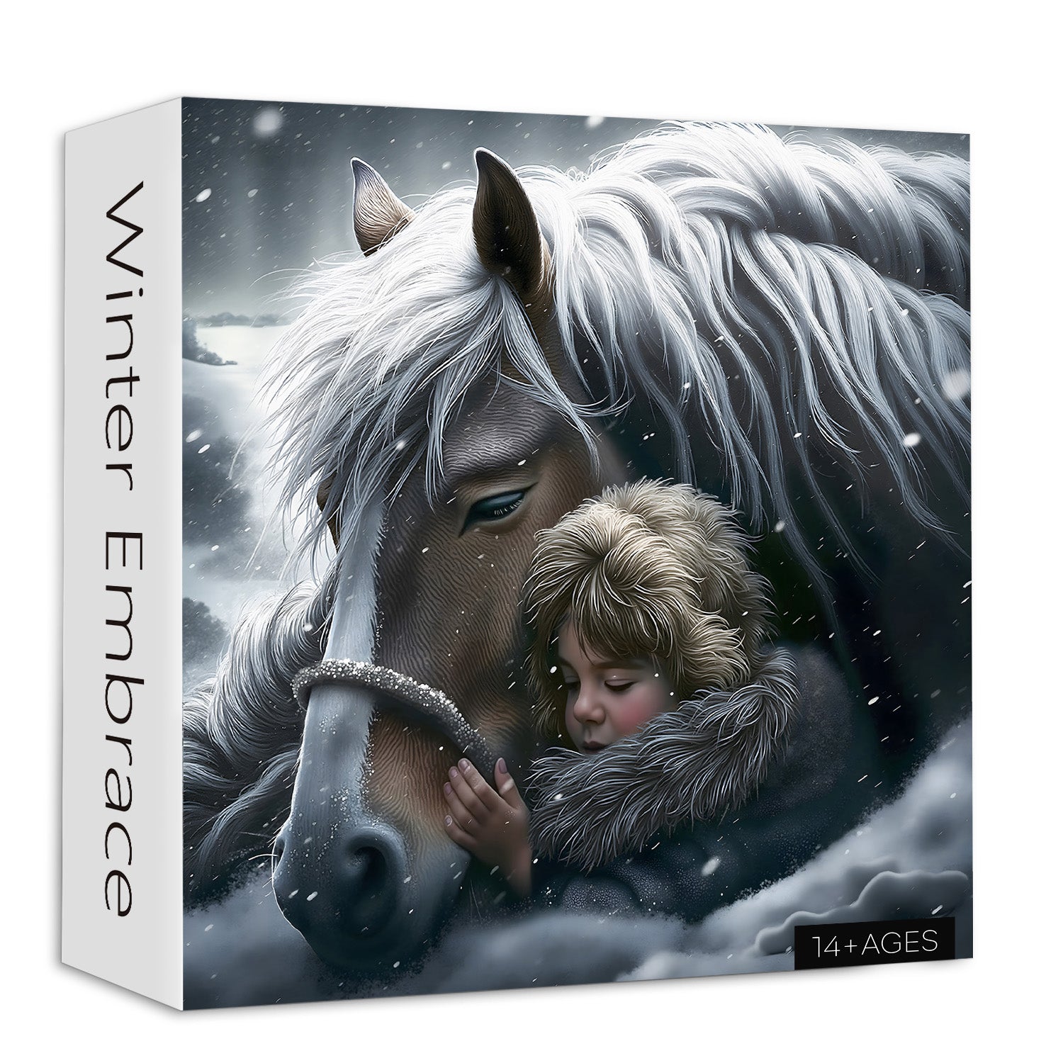 【Guardian in the Snow】A lushly furred horse and a child nestled in its embrace, perfectly captured in this piece, depicts the purest trust and deep affection between humans and animals. Each puzzle piece carries a delicate sentiment. When you complete it, you can almost feel the gentle falling of snowflakes, the warmth of your breath, and the comforting companionship of a loved one.